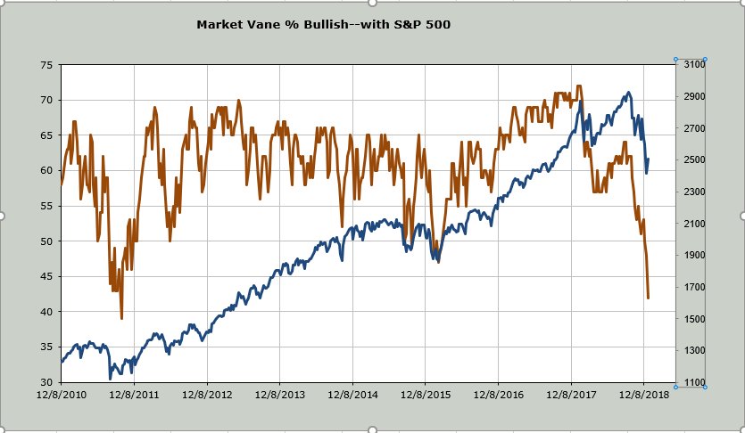 Pourcentage bullish selon Market Vane presque au plus bas de 2011