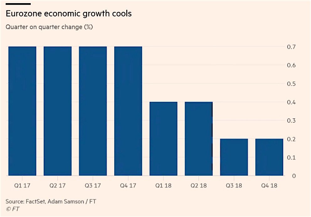 La Fed va être « patiente » sur les taux et « flexible » sur la taille de son bilan. ce qui est donc l’équivalent d’une nième pause dans la normalisation: depuis 2013 on essaie de normaliser, on n’y parvient pas et on n’y parviendra jamais. Les commentateurs ont tendance à oublier que les tentatives de normalisation datent … de 2013!