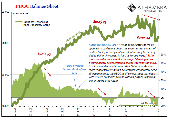 Des rumeurs circulent selon lesquelles  les banques chinoises ont besoin de dollars pour satisfaire à leurs  obligations de financement. Il est difficile de vérifier ces rumeurs directement, mais les anomalies constatées sur certains marchés comme les contrats en eurodollars vont dans ce sens: elles nous disent que la Fed va être obligée de fournir des facilités et d’assouplir sa politique plutot que prévu. Le mythe de la pause va s’écrouler.
