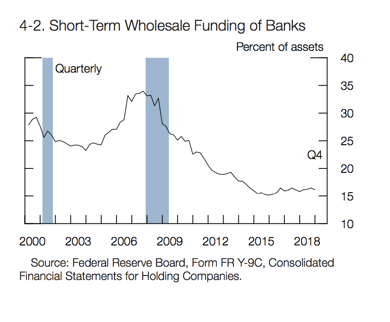 La dépendance des banques US à l’égard des refinancements de court terme a été considérablement réduite depuis la crise de 2008, ce qui confirme bien notre affirmation récurrente: le risque bancaire ce ne sont pas les pertes mais le refinancement de court terme. Les banques ont agi là ou elles savaient qu’il le fallait.