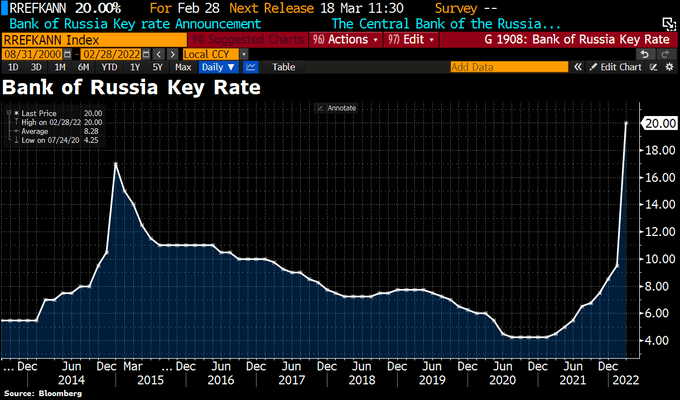 Mesure Russe préventive pour essayer de maintenir la confiance; le taux d’intérêt change de nature, il devient le sacrifice que la banque centrale est obligée de faire pour que l’on conserve la monnaie qu’elle a émise et éviter le run.
