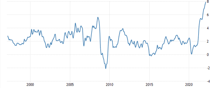 Il n’y a eu que six années d’ inflation annuelle à deux chiffres aux États-Unis – 1942 (10,9 %), 1947 (14,4 %), 1974 (11 %), 1979 (11,3 %), 1980 (13,5 %) et 1981 (10,3 %).