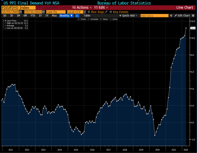 [CNBC] Producer prices rose 11.2% from a year ago in March, the biggest gain on record