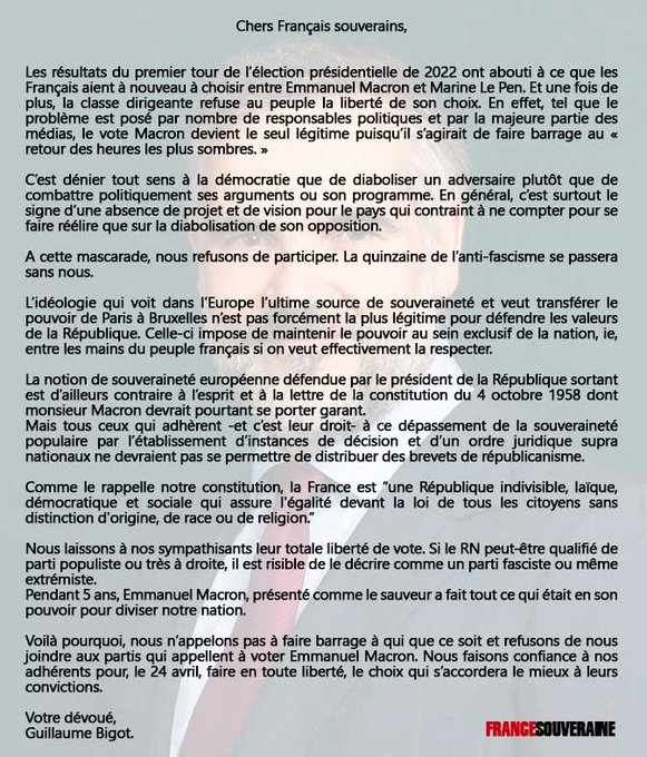 Communiqué de France Souveraine. Etre citoyen à part entière.