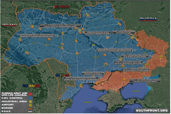 Le plan russe, selon les dirigeants du Donbass, est de réformer l’Ukraine en « une confédération lâche dans laquelle les régions de contrôle seront les régions orthodoxes russophones orientales de Kharkov, Lugansk, Donetsk, Zaporozhye, Kherson, Nikolaev, Marioupol, et Odessa.