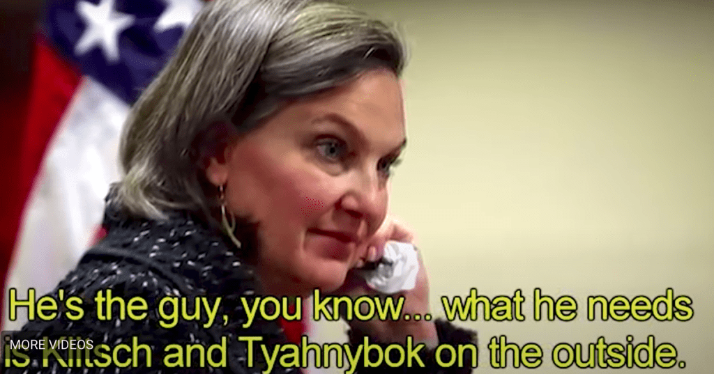 C’était l’une des versions les plus regardées de la conversation interceptée et divulguée entre la secrétaire d’État adjointe de l’époque, Victoria Nuland, et Geoffrey Pyatt, alors ambassadeur américain en Ukraine. Dans cette bande , ils discutent de la composition du nouveau gouvernement quelques semaines avant l’élection démocratique. Le président ukrainien Viktor Ianoukovitch a été renversé lors d’un violent coup d’État le 21 février 2014.