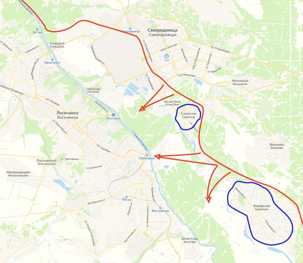 The units of the Armed Forces of Ukraine defending Borovskoye still have the opportunity to retreat to the western bank of the Seversky Donets through the Leninsky Bridge. It can be reached relatively safely by country roads behind Lake Kleshnya.