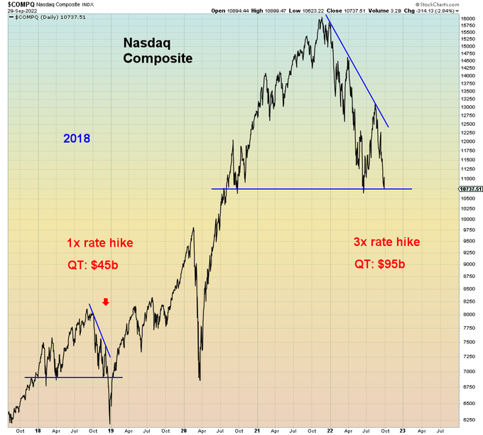 Pour le moment, tout est sous contrôle! Le risque a été disséminé, il n’y a pas de grosse baleine systémique échouée. Il n’y a pas encore de grosse baleine mais on peut considérer que la Grande Bretagne dans son ensemble, c’est une grosse baleine qui échoue. Surveillez de très près toute déclaration de la Fed et soyez prêts a la décoder. Les indicateurs clefs sont les déclarations et le comportement du dollar. Cela fait deux jours que le dollar reflue cela n’est pas insignifiant. Les Etas Unis sont toujours tentés de venir en aide aux anglais, c’est historique.