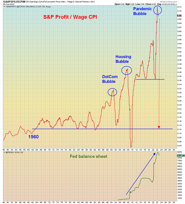Les causes de tout en un graphique synthétique; une réduction considérable de la part des salaries dans la richesse nationale, une progression fantastique des inégalités, solvabilisées par une folie de création monétaire de la banque centrale, voila ce que l’histoire retiendra.