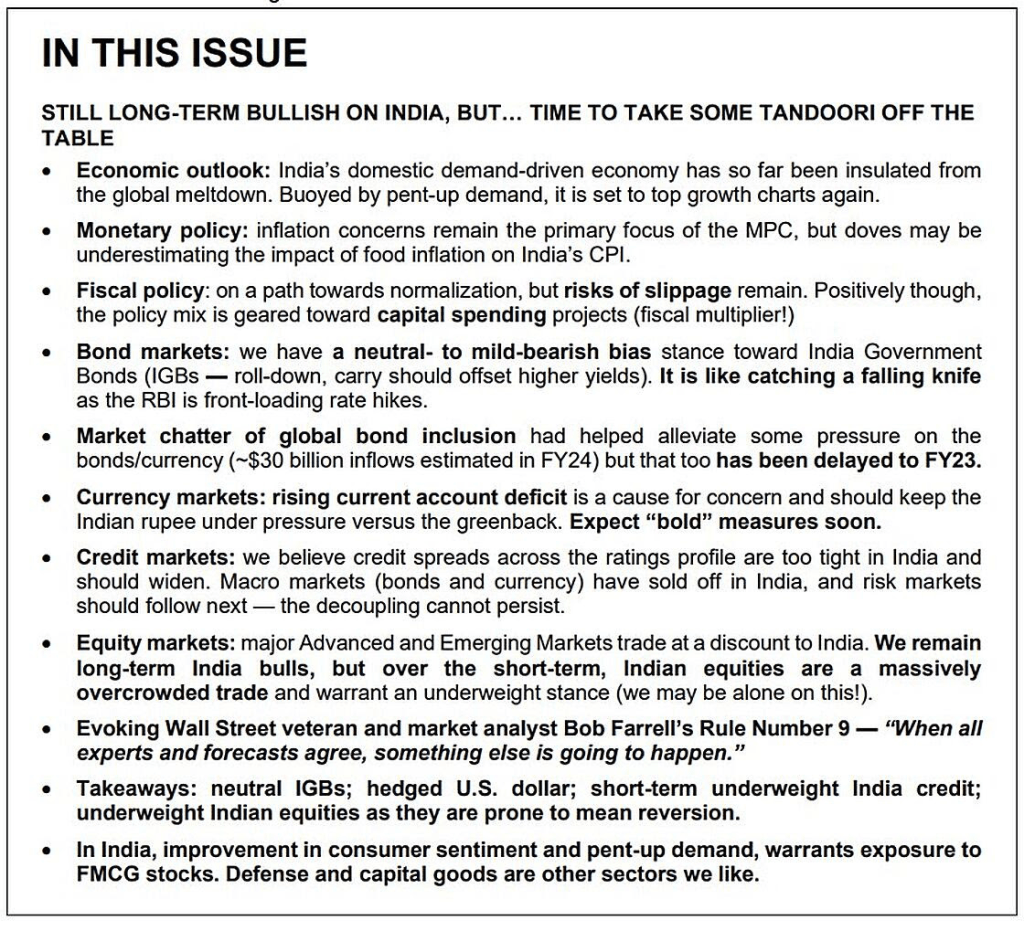 Oui, nous sommes baissiers à court terme sur les actifs risqués en Inde et seuls sur cette vision à contre-courant !