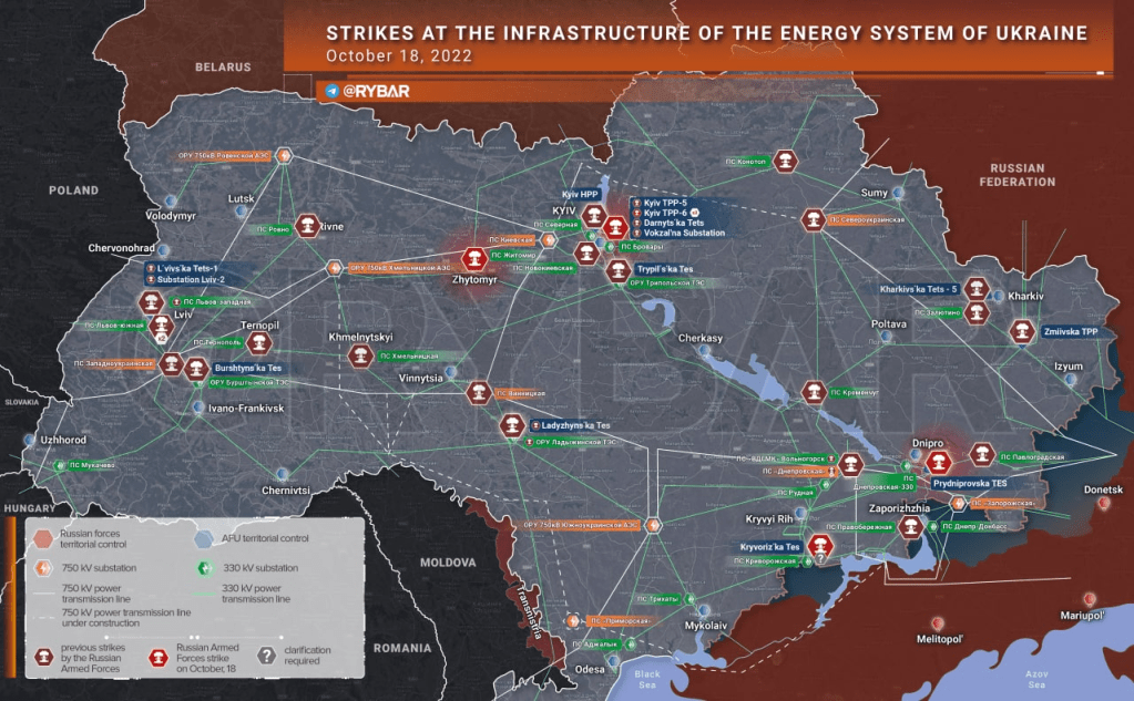 LES FRAPPES RUSSES SUR LE SYSTEME ENERGIE UKRO LE 18