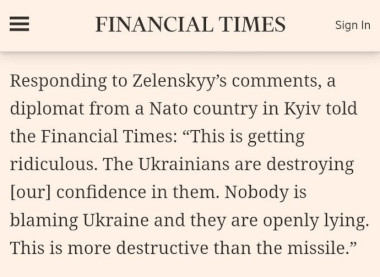 Le Financial Times cite l’opinion d’un « diplomate anonyme d’un pays de l’OTAN à Kiev » :