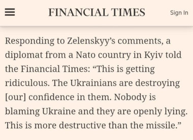 Le Financial Times cite l’opinion d’un « diplomate anonyme d’un pays de l’OTAN à Kiev » :
