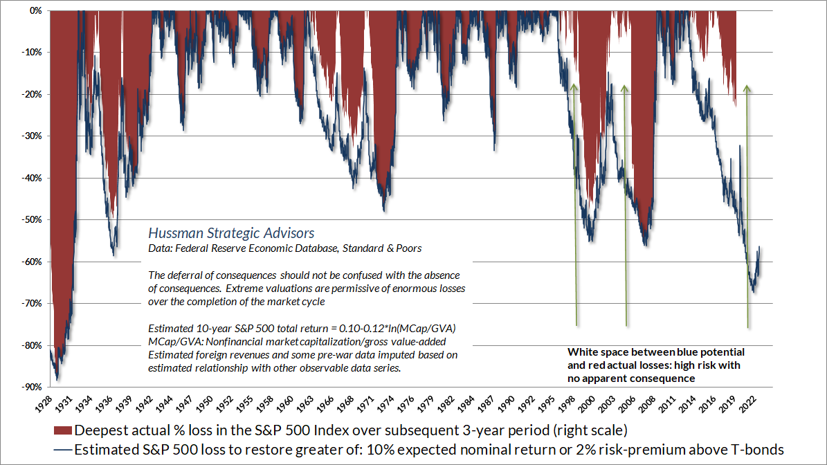 L’image ci dessous est passionnante, elle figure le risque de baisse du marché compte tenu du niveau actuel de son prix et donc de sa valorisation.