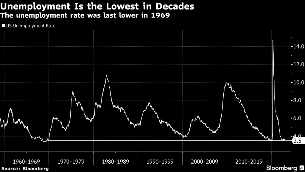 Et la base repose sur deux variables très incertaines – l’emploi et l’inflation – que la Fed surveille pour calibrer sa politique. À l’heure actuelle, la situation de l’emploi semble bonne. Le taux de chômage est à son plus bas niveau depuis cinq décennies et les demandes initiales de chômage sont inférieures à un maigre 200 000.