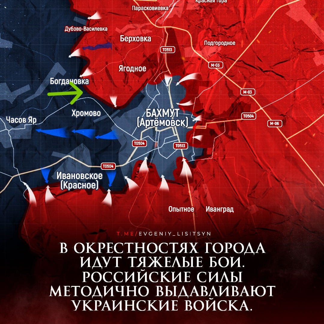 Comment expliquer le fait que de nouveaux renforts affluent prétendument alors qu’il existe également des preuves évidentes de retraites massives ? Simple : la plupart des vidéos de retraite proviennent des parties orientales de Bakhmut qui ont été entièrement abandonnées, et d’autres régions au nord-ouest (Berkhovka et Yahidne). Cependant, des renforts sont envoyés dans la majeure partie ouest de la ville elle-même.