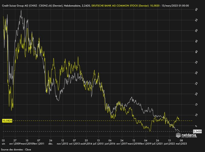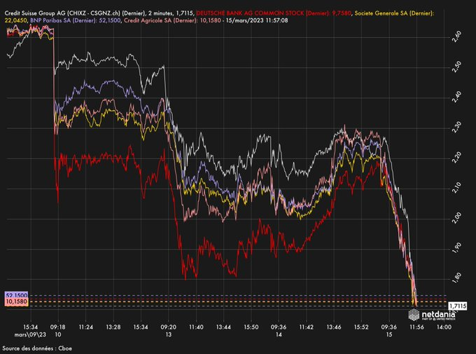 Maintenant Credit Suisse , qui est sytémique pour la Suisse, est en baisse de 96,7% sous les plus hauts historiques.