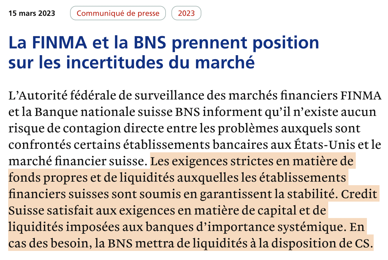 Ouf, les autorités suisses se portent au secours du pauvre pauvre Crédit Suisse ! Tout le monde respire… À tort
