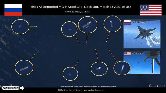 Images satellites de navires de la flotte de la mer Noire de la marine russe près du site de l’écrasement du drone américain MQ-9 Reaper en mer Noire