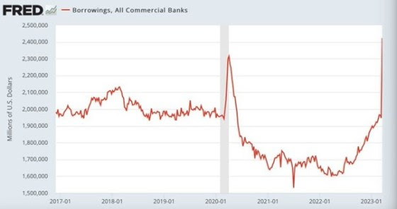 La crise bancaire n’est pas terminée. on a mis un couvercle dessus; ce qui signifie qu’elle a été transférée au niveau de la banque centrale la Fed qui a fourni les liquidités , les banques en difficulté ont emprunté en masse a la Fed