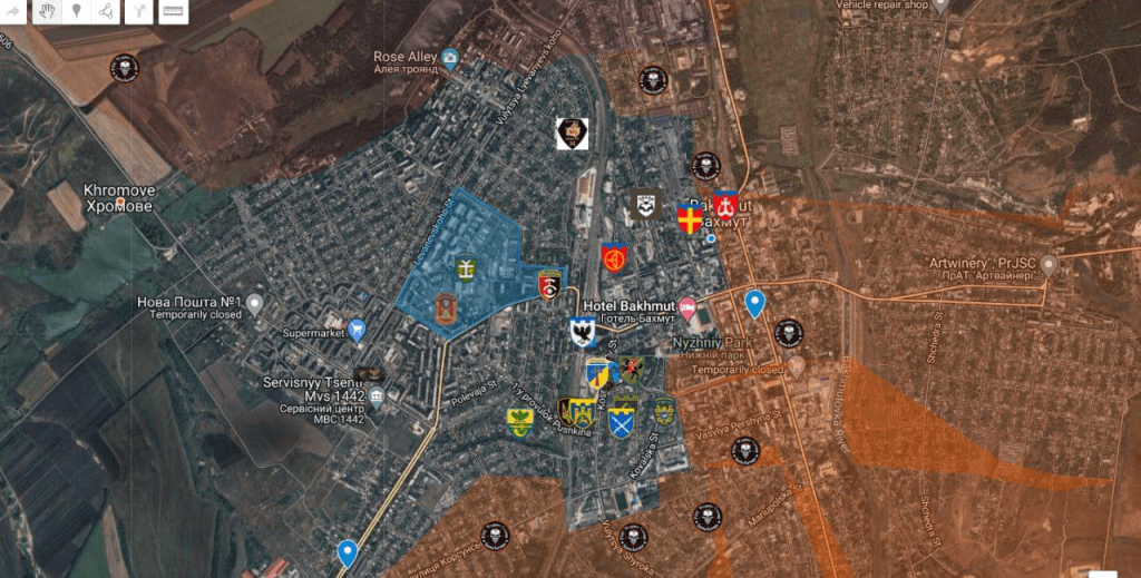 🔻Dans la zone du marché, des unités du PMC Wagner se dirigent vers le stade. Récemment, des unités du PMC Wagner ont pu libérer la rue Myru. Dans le centre d’Artemovsk, le CMP Wagner s’est avancé du bâtiment de l’administration locale en direction de la voie ferrée. La Place de la Liberté a été libérée par le CMP Wagner, et maintenant les combats sont centrés le long du parc de la ville.