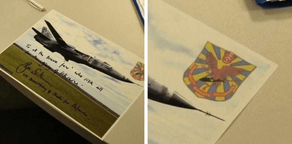 Sur la carte postale figure l’emblème de la 7e brigade d’aviation tactique à Starokonstantinov (région de Khmelnytsky).