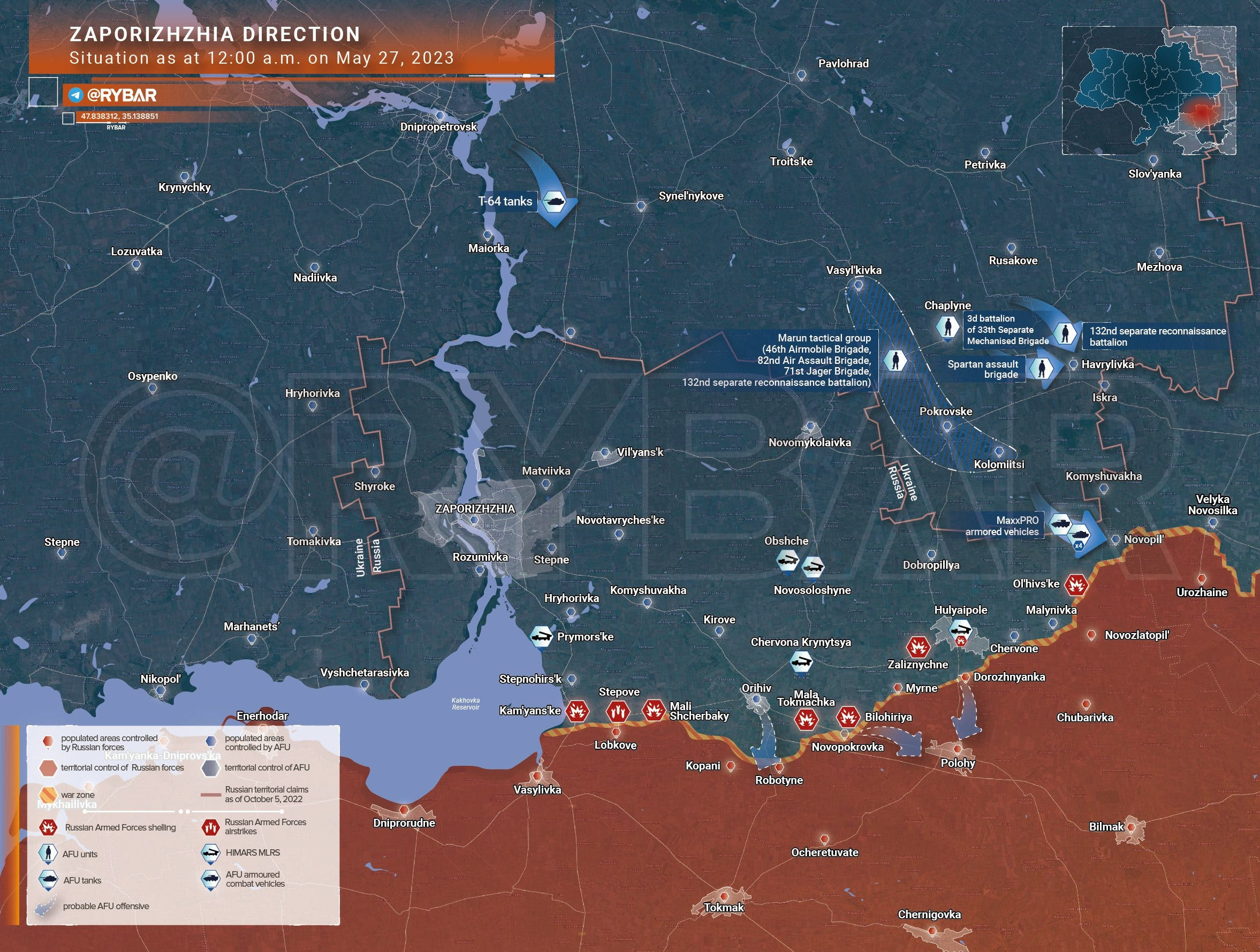 Annonces réelles et sans ambiguïté de nombreuses personnalités ukrainiennes et occidentales que l’offensive est proche. Cela comprend la visite d’hier du commandant des forces terrestres, le général Syrsky, sur les lignes de front, pour prononcer un « discours pré-offensif »
