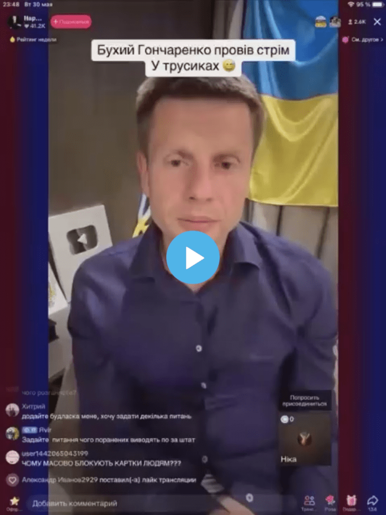 Il y a aussi une vidéo où le député de la Verkhovna Rada Alexei Goncharenko, ivre, confirme par l’affirmative la question de savoir si le QG de GUR a été touché: