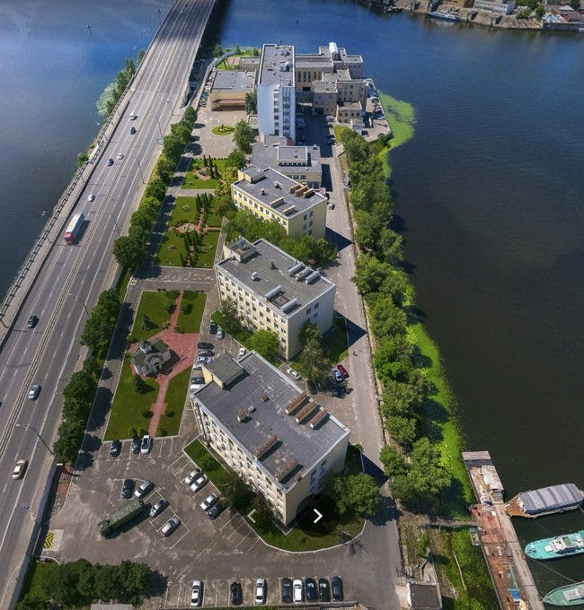 Le bâtiment blanc au sommet de cette image est le quartier général de GUR. Voici une autre vue satellite d’en haut: