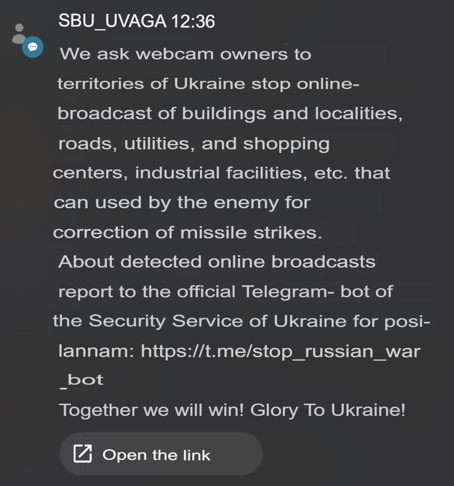 Il a raison sur ce qui précède, le SBU s’est maintenant lancé dans une poursuite encore plus enragée sur quiconque filme les arrivées. Non seulement plusieurs nouvelles personnes ont été arrêtées (cela s’ajoute aux plus de 32 personnes arrêtées lors des frappes de Kiev la semaine dernière dont j’ai déjà parlé), mais les webcams de Kiev sont maintenant pourchassées sans pitié: