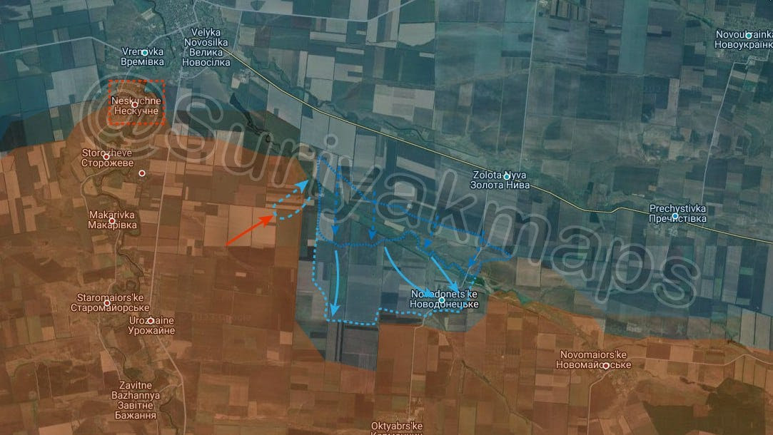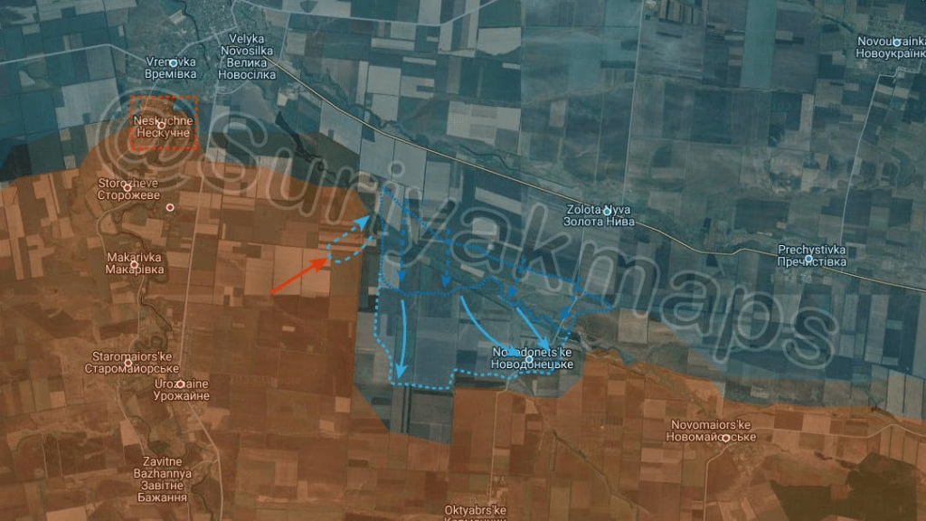 Gardez à l’esprit que la Russie a également repris la colonie de Neskuchne juste à la pointe sud-ouest de Velyka Novosilka qui a été prise il y a un jour ou deux, donc on peut se demander qui a même fait plus d’avancées aujourd’hui.