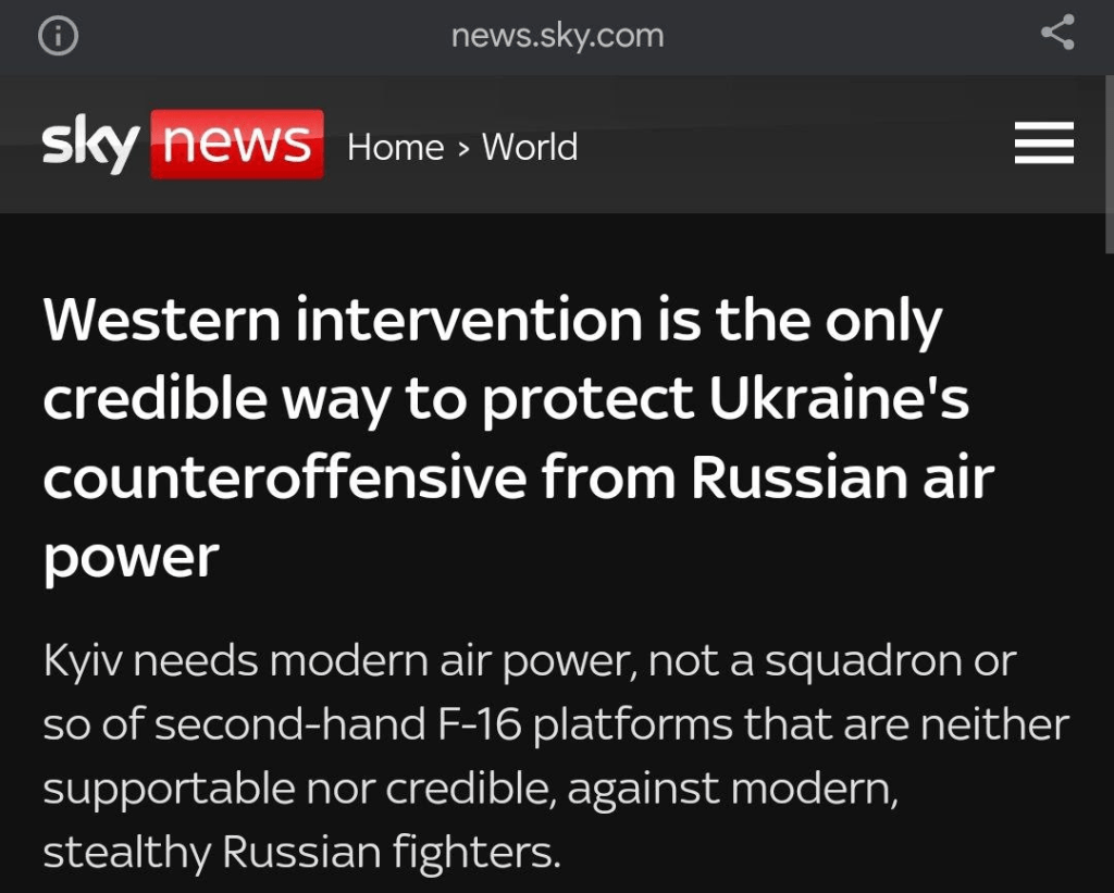 La seule façon crédible de fournir à l’Ukraine la capacité aérienne requise pour l’offensive de cette année serait que l’Occident intervienne et engage des ressources – et des équipages – occidentaux dans le conflit.