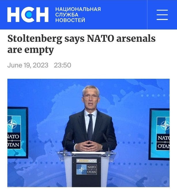 Ils savent qu’ils ne peuvent pas rivaliser avec la Russie dans la guerre industrielle, ils ont donc besoin d’un truc sournois quelconque. Non seulement Stoltenberg a déclaré que leurs arsenaux étaient presque vides