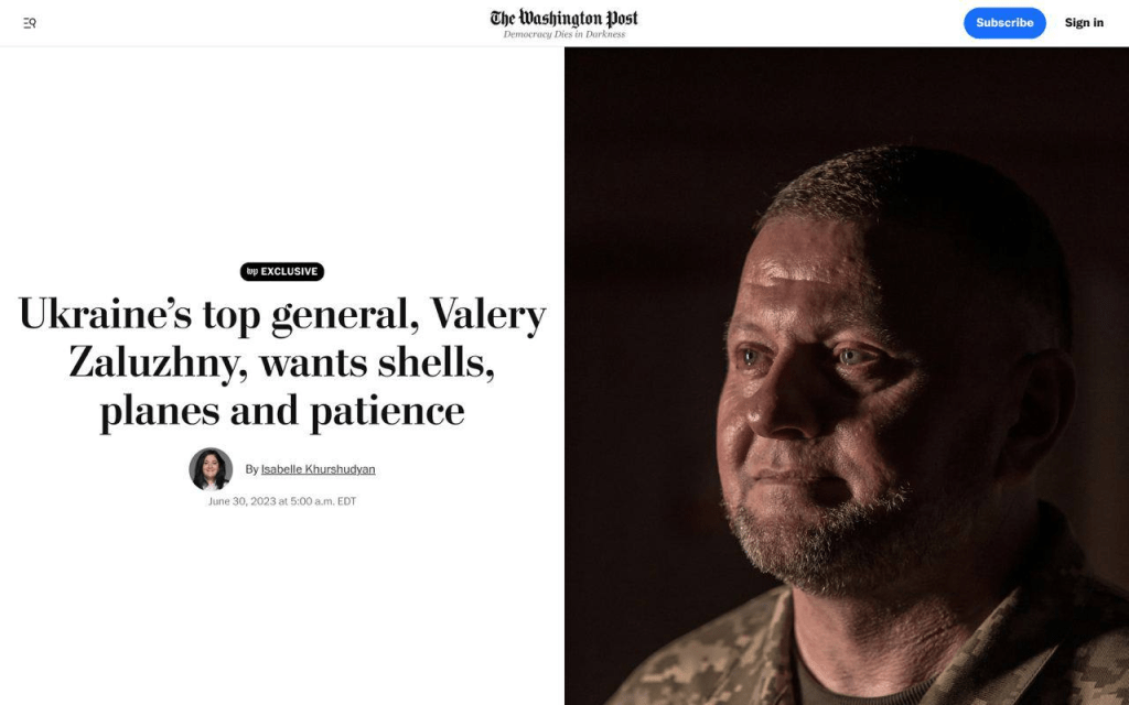 Quelques extraits supplémentaires d’une interview du commandant en chef des Forces armées ukrainiennes Valery Zalozhny au Washington Post