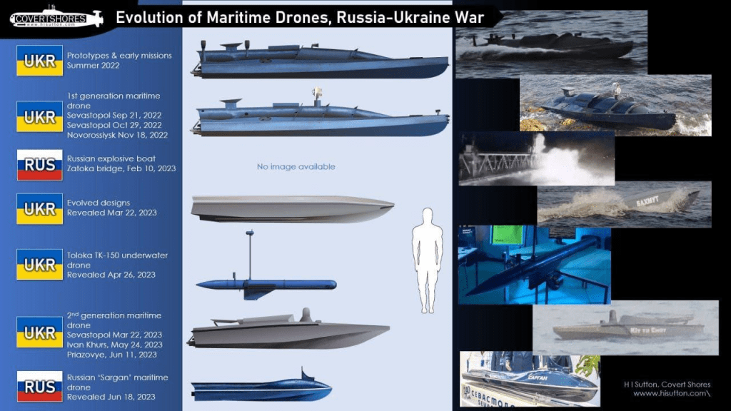 Rappelons que la Russie elle-même a déjà démontré l’utilisation d’un drone naval lors de l’attaque du pont Zatoka d’Odessa l’année dernière :