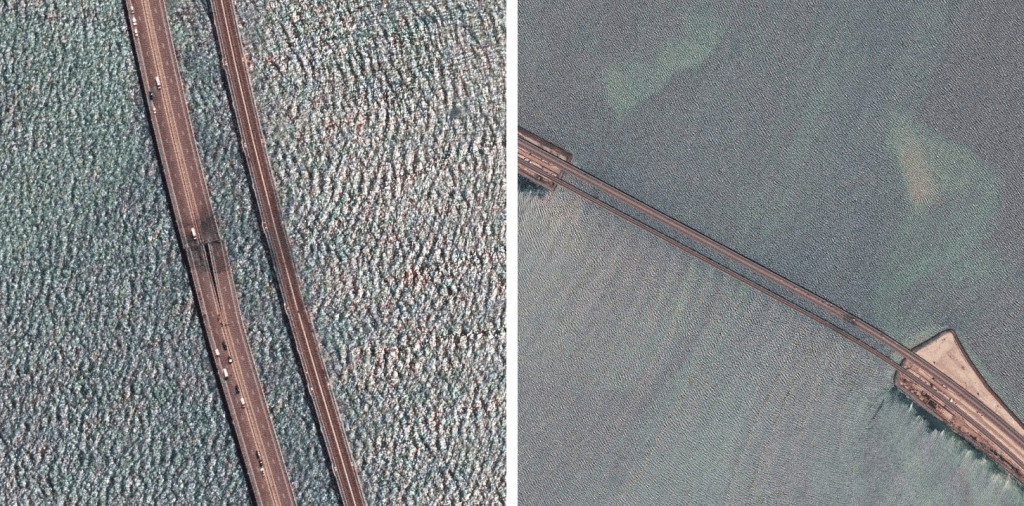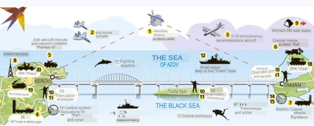 Enfin, le pont de Kertch est le plus long pont d’Europe et l’un des plus longs du monde. Il est très difficile de surveiller efficacement toute sa longueur pour ce qui peut être des drones de surface ou souterrains (sous-marins).