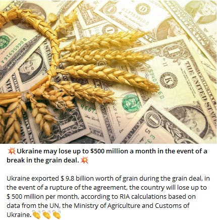 La chose la plus importante à noter, cependant, est que le moment de cette attaque s’est produit exactement le 17 juillet, qui était la date d’expiration tant attendue de l’accord sur le grain, si vous vous en souvenez. Ce n’est pas par hasard.