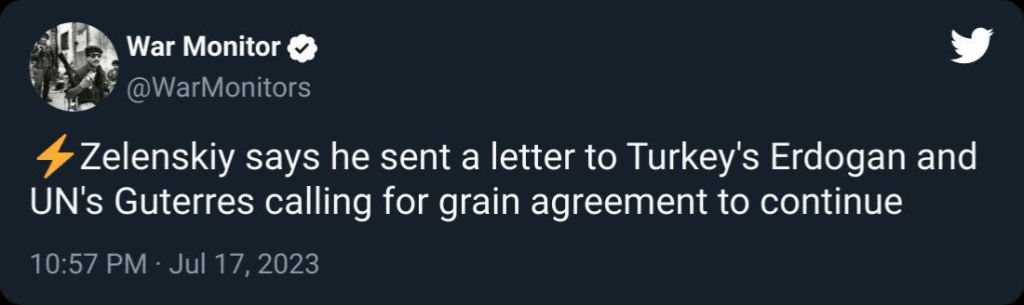 Si vous vous souvenez, il y avait des rumeurs précédentes selon lesquelles la Turquie ou même les États-Unis remettraient l’accord en place en escortant les navires céréaliers à travers la mer Noire, même sans l’autorisation de la Russie. Cependant, deux nouvelles déclarations des deux semblent suggérer le contraire, pour l’instant du moins :