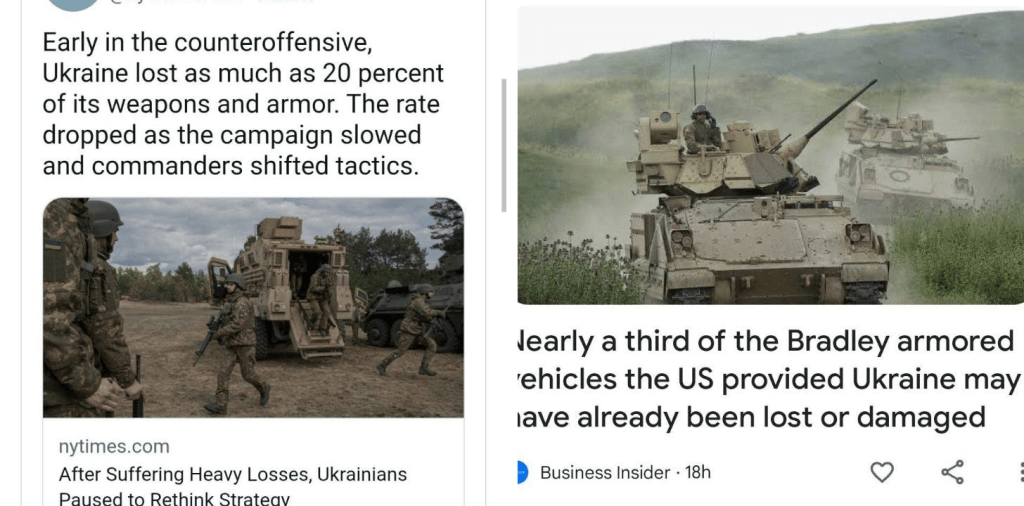 Mais ne vous y trompez pas, la plus grande différence sera de loin le simple fait de l’énorme baisse attendue du soutien occidental. Si le soutien occidental continuait de la même manière qu’il était à son apogée, alors je pense que l’Ukraine peut potentiellement durer encore plusieurs années. Mais au taux d’attrition actuel, ils ne peuvent même pas dépasser la fin de cette année sans d’énormes changements à leur doctrine de combat, qui sont déjà en cours – mais j’y reviendrai dans un instant.