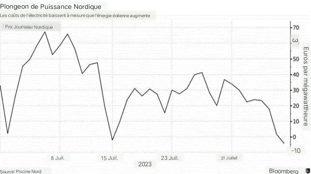 Le prix moyen de l’électricité en Scandinavie est tombé à -4,14 euros par MWh sur la bourse Nord Pool AS.