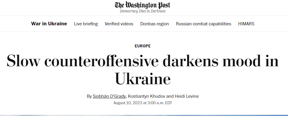 Le pessimisme et la condamnation de l’ukraine sont désormais endémiques dans leurs rapports. Il est à peu près admis maintenant que l’Ukraine n’a aucune chance dans la contre-offensive.