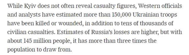 Un autre nouvel article du NYTimes déclare ouvertement que l’Ukraine compte désormais plus de 150 000 victimes au total :