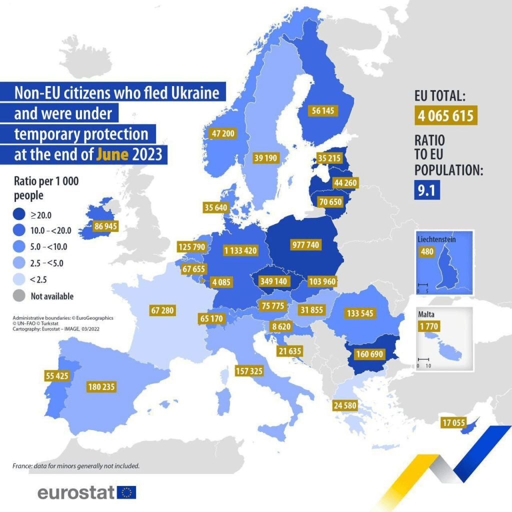 C’est tout à fait concevable étant donné que les dernières données de juin 2023 montrent que plus de 4 millions d’Ukrainiens ont fui vers l’UE uniquement, en petits caractères indiquant que cela ne compte même pas les mineurs pour lesquels ils n’ont aucune donnée