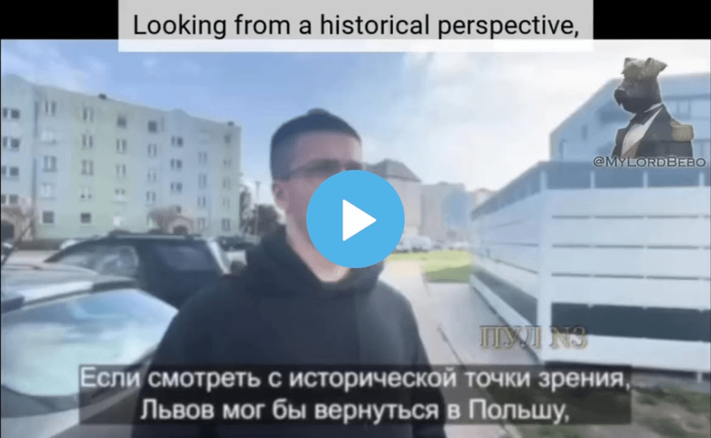Et une vidéo fascinante a été révélée qui prétend montrer un mercenaire polonais combattant pour l’AFU qui explique ouvertement qu’il se fiche complètement des Ukrainiens mais qu’il se bat plutôt pour que la Pologne regagne ses terres. Certains se sont moqués du fait que cela pourrait être faux, mais je crois qu’il ne savait pas qu’il était enregistré et pensait qu’il jubilait en toute confiance :