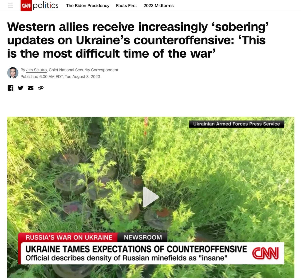 Le pessimisme et la condamnation de l’ukraine sont désormais endémiques dans leurs rapports. Il est à peu près admis maintenant que l’Ukraine n’a aucune chance dans la contre-offensive.