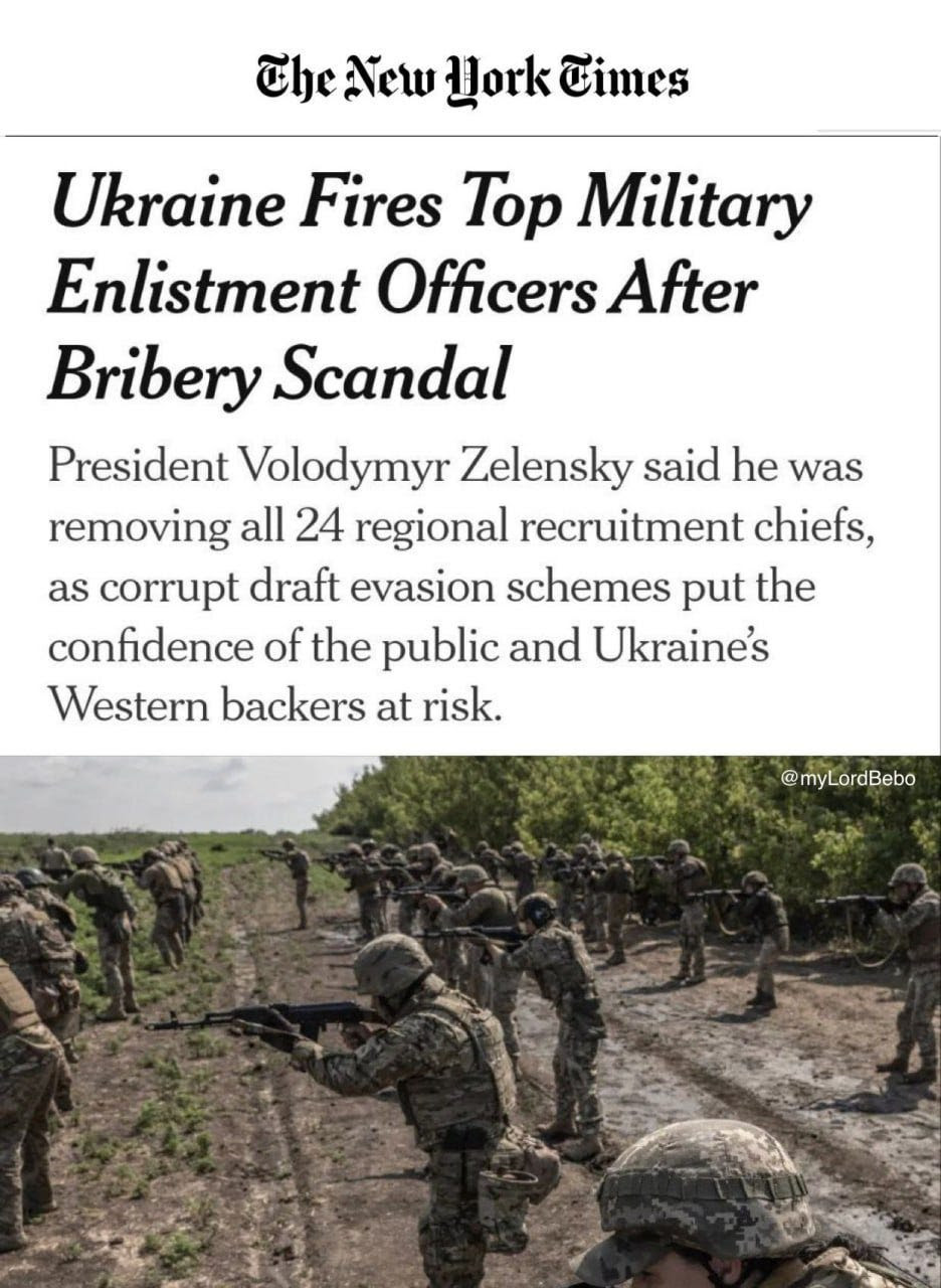 Now the latest news from today revolves around Zelensky firing all the country’s top mobilization commanders in what is an obvious attempt to desperately reform the entire mechanism on the eve of what we previously reported would be a potential huge new recruitment drive later this year. The previous commanders were fired for corruption and taking bribes, now Zelensky wants to make sure that no one is let through the cracks and every able body is winnowed up.