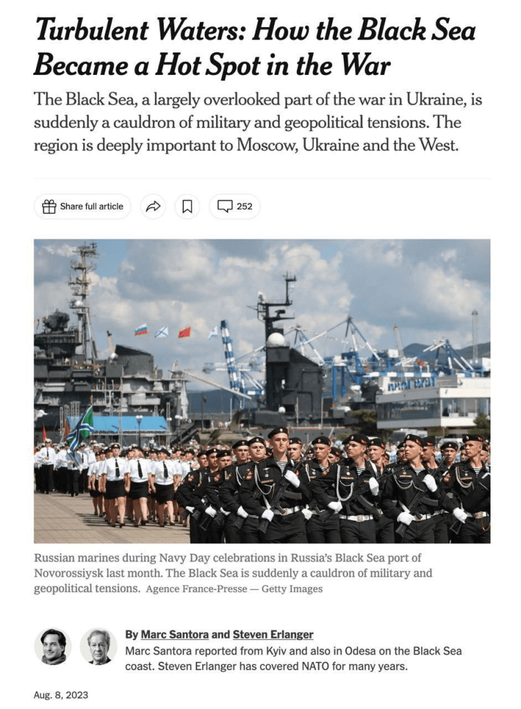« La mer Noire, auparavant négligée par l’Occident, est devenue un important théâtre d’action militaire. La lutte pour son contrôle n’aura pas seulement des conséquences militaires, mais affectera également les marchés mondiaux de l’énergie et l’approvisionnement alimentaire mondial », indique l’article du New York Times.