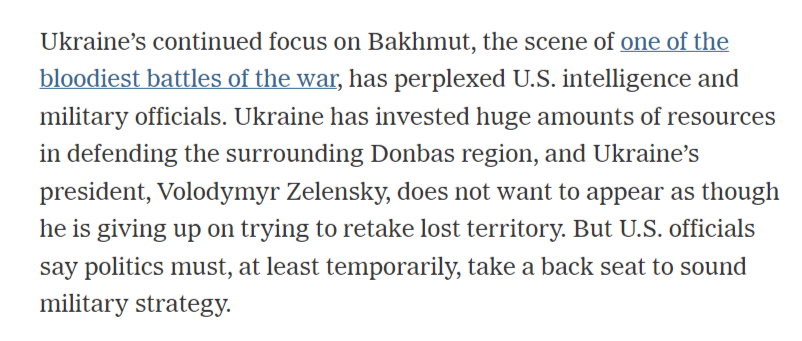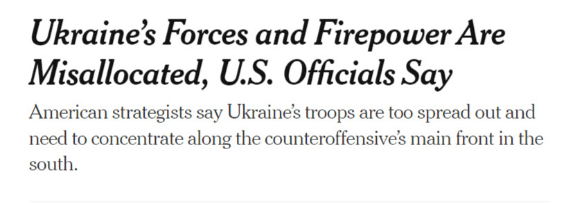 Ce qui est intéressant, c’est que d’autres titres ont récemment révélé à quel point les dirigeants américains se heurtent à ceux de l’AFU en ce qui concerne la répartition des forces. À savoir que les dirigeants occidentaux souhaitent que l’Ukraine se lance à fond vers le sud, alors qu’ils considèrent que l’afflux de réserves ukrainiennes vers Bakhmut et le front nord de Kharkov est un gaspillage et un gaspillage.