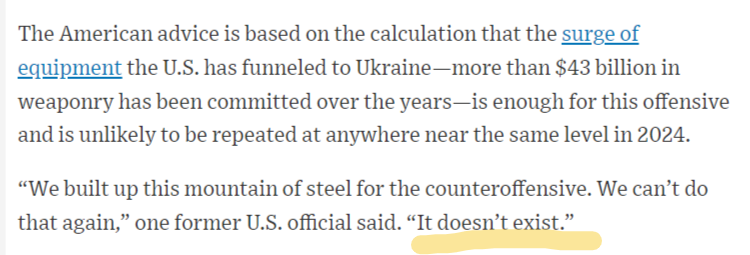 À savoir qu’un ancien responsable américain leur a dit que le financement serait réduit l’année prochaine et que la « montagne d’acier » nécessaire pour rénover l’AFU « n’existe tout simplement pas » :