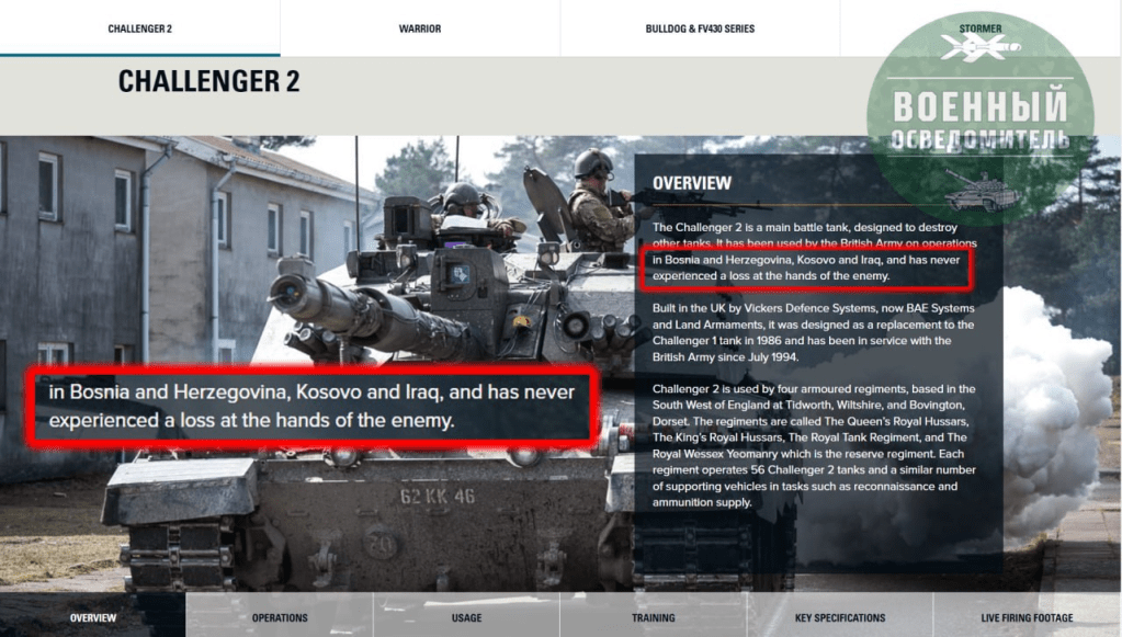 La réputation de ce char, comme invulnérable, est complètement ternie. Ils ont été activement utilisés par le contingent britannique en Irak et n’ont subi aucune perte des armes antichars ennemies. Le seul « Challenger » brûlé a été détruit par un « tir ami ».